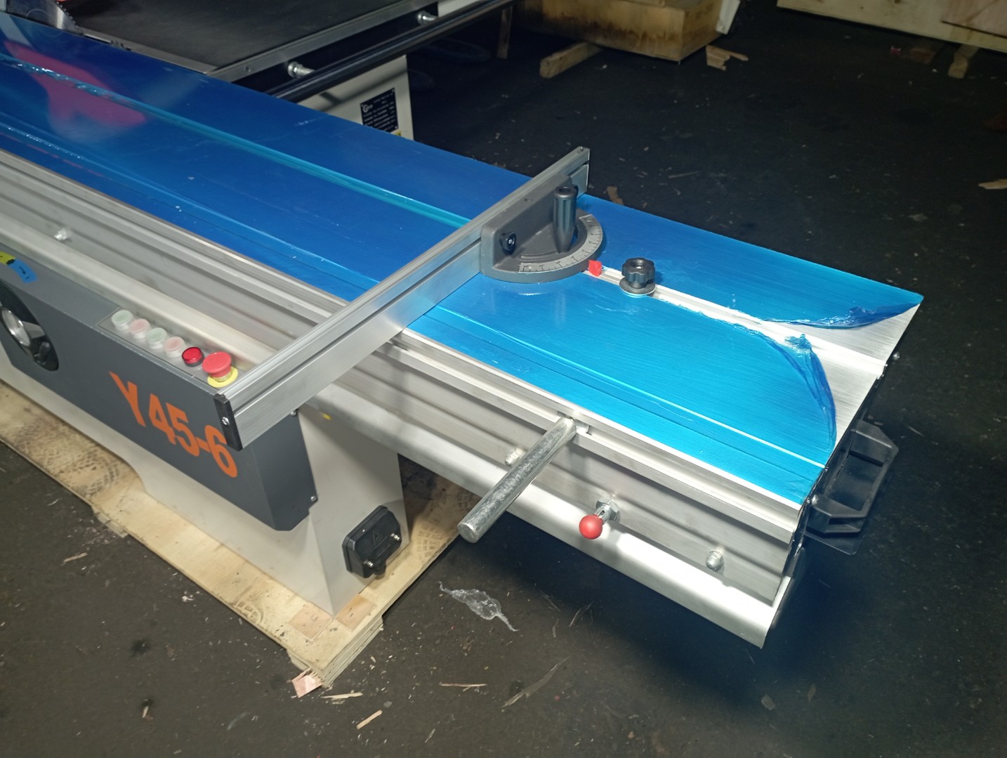 Надежная алюминиевая роликовая каретка и широкий поперечный стол позволяют устанавливать и перемещать относительно пильного механизма листы большого формата.