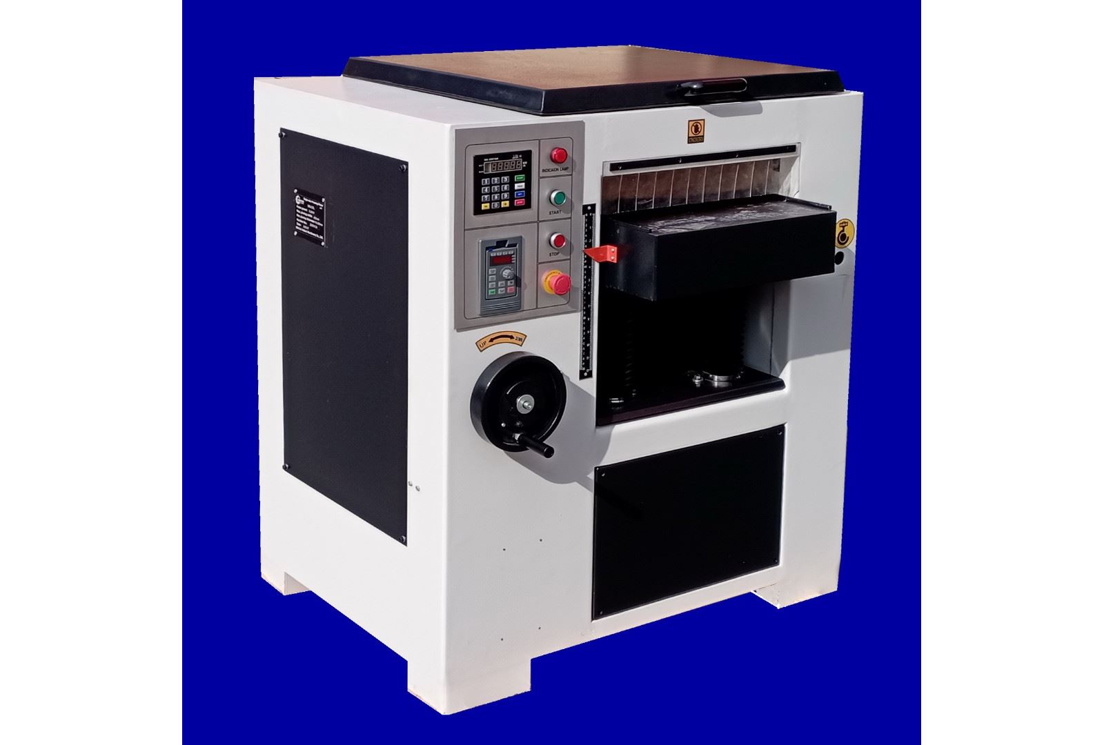 • Штурвал для ручного подъёма стола и визуальная линейка контроля толщины обработки заготовки.